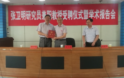 On the morning of June 7th, Professor Zhang Weiming, president of Nanjing Institute for Comprehensive Utilization of Wild Plants, was employed as an adjunct professor in our university and the ceremony was hold in the third lecture hall of the conference center. At the ceremony, Jijian Zhang, vice-president of Jiangsu University, issued a letter of appointment and wore a school emblem for Zhang Weiming. Professor Ximing Xu, dean of School of pharmacy, presided over the engagement ceremony and nearly 100 teachers and students attended the ceremony.After the employment ceremony, professor Zhang gave a report entitled "Ecological High-value Utilization of Special Economic plants".