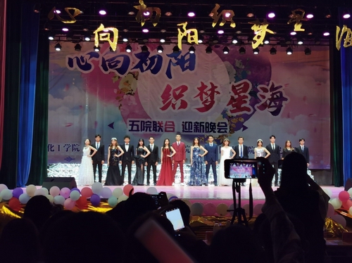 In order to enrich students' after-school life and show the good mental outlook of students, a welcoming party for new students jointly organized by The College of Pharmacy, Medical College, Computer College, Chemical College and Art College was held in school auditorium on 2 November evening. Wei Yuan, secretary of the Party Committee of The College of Pharmacy, Liu Zhengxin, deputy secretary of the Party Committee, Chen Peng, head of the Youth League Committee, and Li Rulin, 2019 class counselor attended the party.