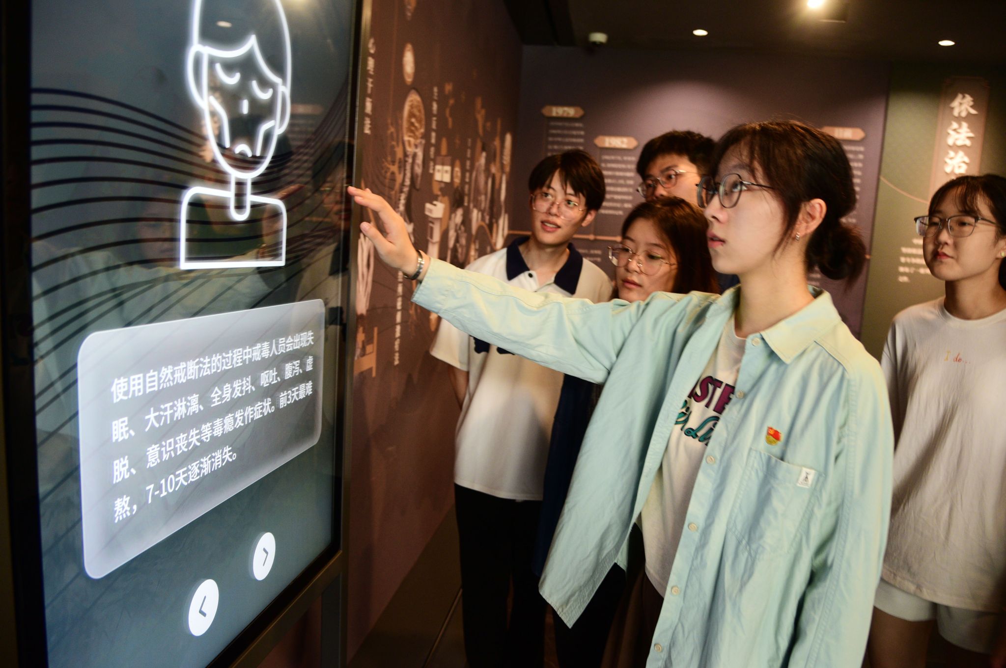 2024年9月,伟德国际victor1946组织师生党团员来到镇江市禁毒教育基地参观学习,现场通过沉浸式观影、互动式体验、仿真毒品模型展示等形式重温禁毒史、了解毒品种类及其危害、学习禁毒知识,增强禁毒意识和法制观念。